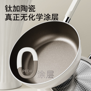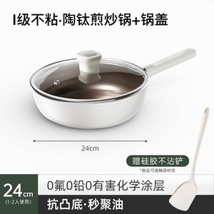 钛陶瓷平底锅0氟不沾锅家用牛排煎锅炒菜锅燃气灶电磁炉专用锅