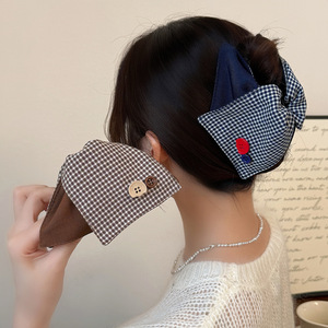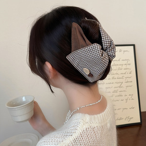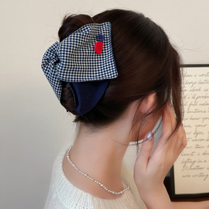 复古撞色格子三角抓夹轻奢设计感布艺鲨鱼夹后脑勺盘发扎发发夹女