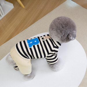 秋冬新款休闲条纹可牵引薄款拼接四脚卫衣中小型犬猫咪狗狗衣服