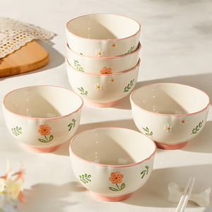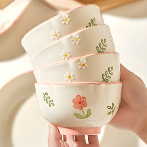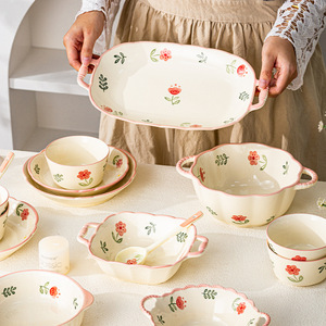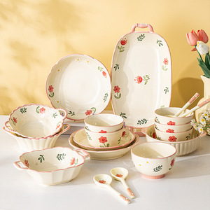 高颜值粉色小清新餐具一人食米饭碗沙拉碗家用碗碟盘陶瓷晴天套装