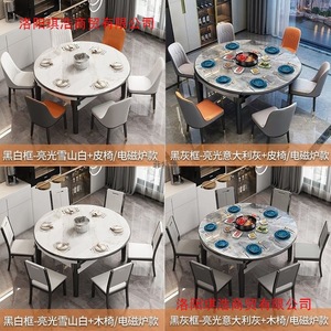 餐桌家用高级感岩板餐桌圆桌实木餐桌椅圆形餐桌可伸缩折叠餐桌椅