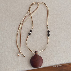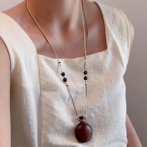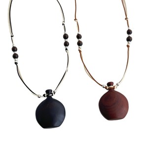 美拉德棕色黑檀木酒壶吊坠项链女复古民族风挂脖长款毛衣链配饰品