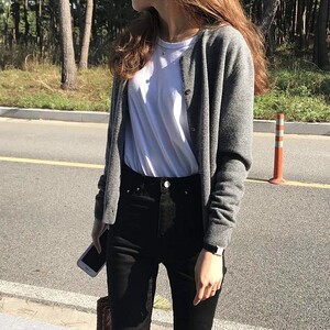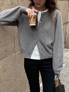 针织衫女开衫春秋2025新款薄款外穿秋季灰色外搭上衣秋冬毛衣外套