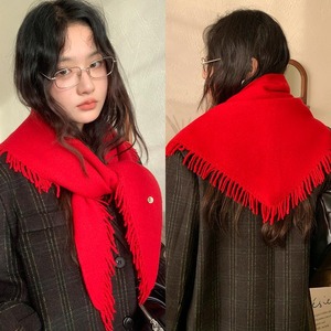 冬混纺流苏三角巾柔软气质百搭保暖披肩加厚围巾围脖韩系氛围感女