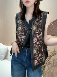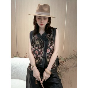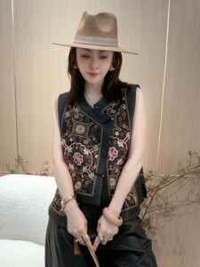 新中式国风重工刺绣盘扣马甲女2025秋季新款复古圆领洋气减龄上衣