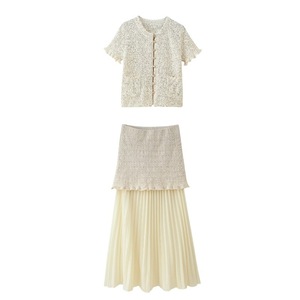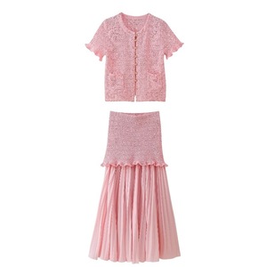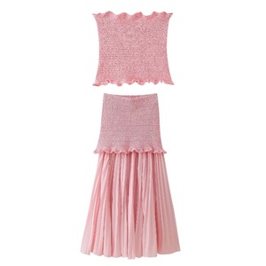 ZA跨境批发2025夏季新款欧美风时尚弹力针织抹胸短袖时尚半裙套装