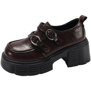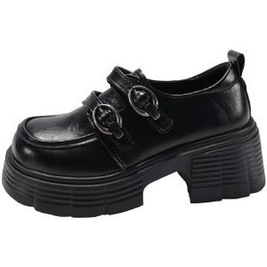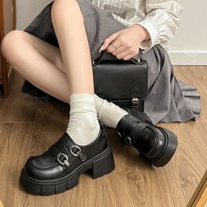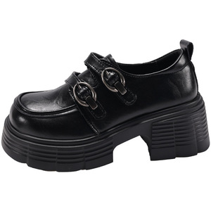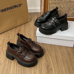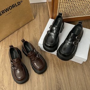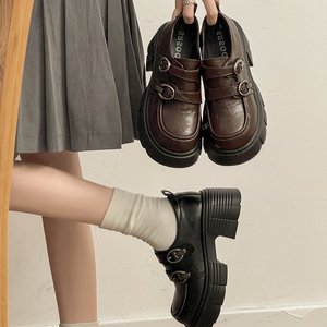 厚底粗跟乐福鞋女2025春季新款复古英伦风百搭魔术贴法式小皮鞋女