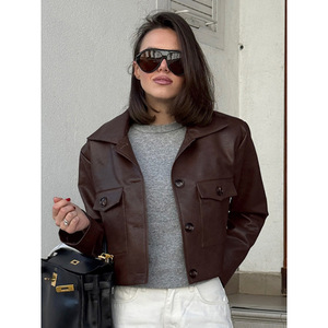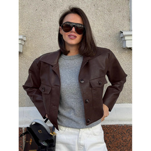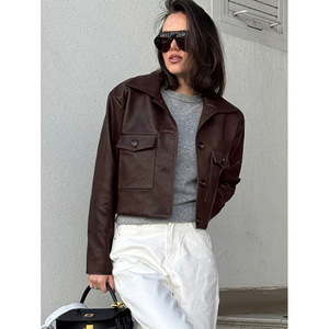 秋季外贸批发欧美新款机车风潮流时尚翻领长袖修身显瘦皮衣外套女