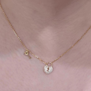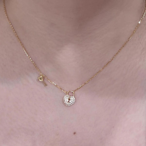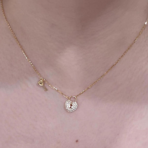 小红书爆款日系桃心锁钥匙吊坠项链轻奢小众款百搭锁骨链一件代发