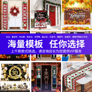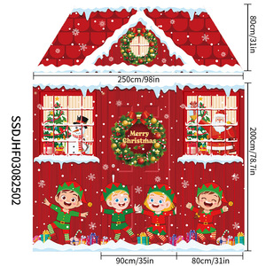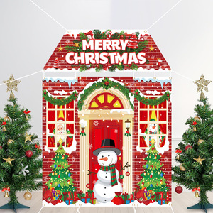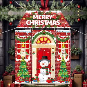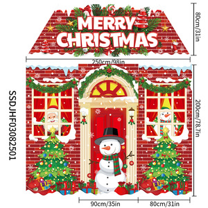 跨境新款圣诞节4件套异形切割砖墙旗帜拍照糖果屋激光切割异形旗
