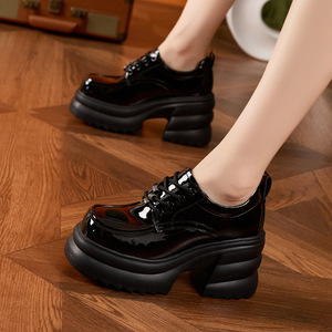 厚底乐福鞋女2025年秋冬新款增高单鞋英伦风小皮鞋松糕底粗跟皮鞋