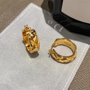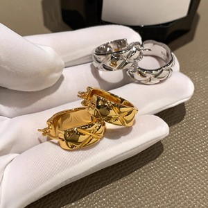 18K真金电镀小香风菱格纹耳环女轻奢小众高级感简约气质耳扣耳钉
