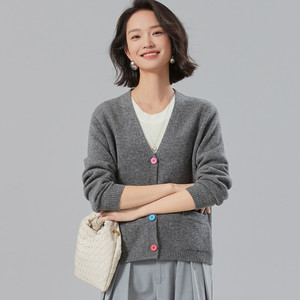 【100%羊毛】2025早秋休闲百搭V领女 针织开衫羊毛外套女式羊毛衫