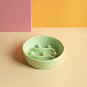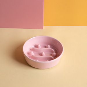 创意线条慢食碗防噎宠物碗粮防打翻碗猫粮碗狗碗猫碗陶瓷缓食碗