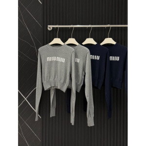 现货高品质mm家提花字母简约百搭辣妹短款针织上衣女