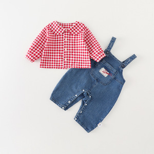 女童牛仔背带裤套装洋气宝宝春秋儿童裤子两件套百搭休闲秋装批发