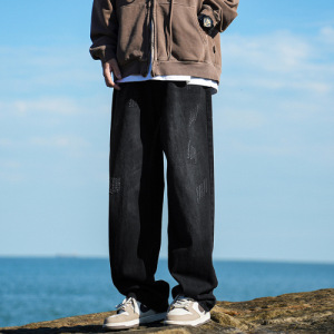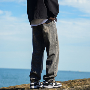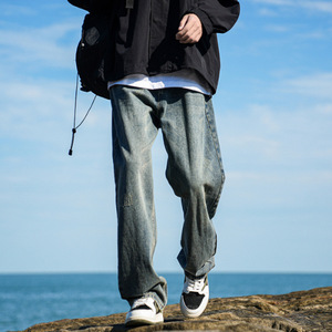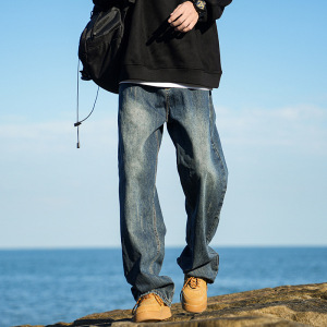 美式复古牛仔裤男士秋季2025新款春秋款宽松直筒弯刀阔腿裤子男式