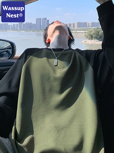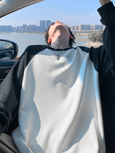 NASA插肩袖潮流肌理感长袖t恤春秋季潮牌美式宽松痞帅内搭打底T恤