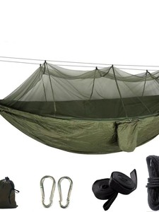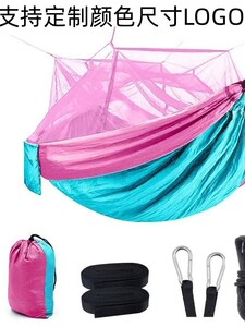 吊床户外尼龙速开防蚊露营出游透气抗撕裂庭院单人双人降落伞布