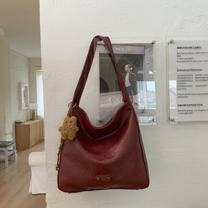 复古简约时尚包包女士包2025新款纯色软面托特包大容量单肩腋下包