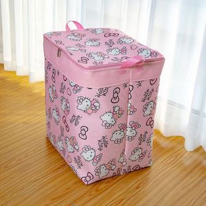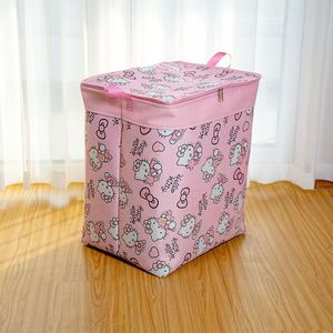 120升【hellokity】收纳箱三层加厚防水防潮可折叠装衣服被子收纳