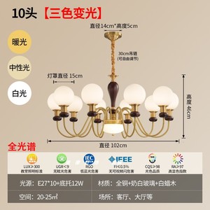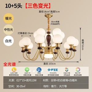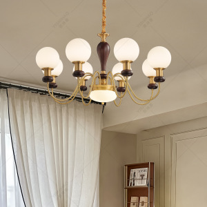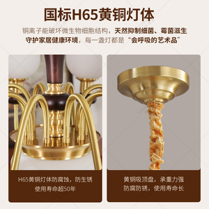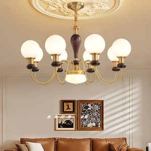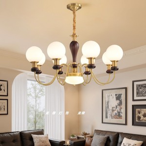 全铜中古风客厅吊灯美式复古北美白蜡木餐厅卧室书房轻奢2025新款