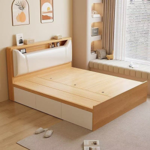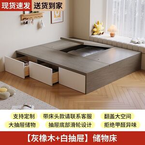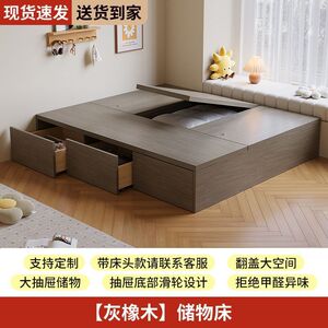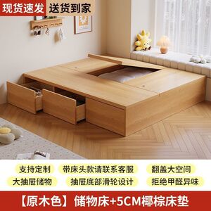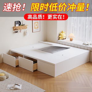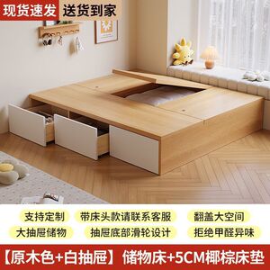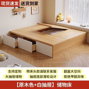实木榻榻米床无床头双人储物床出租房用1米2家用地台小户型单人床