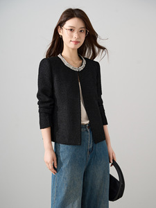 高级感短款小香风外套女2025早秋新款小个子时髦休闲圆领西服上衣