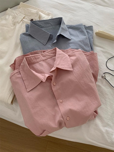 靓依轩韩系树莓粉长袖衬衫女早秋新款薄款慵懒宽松休闲衬衣外套女