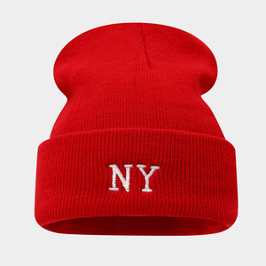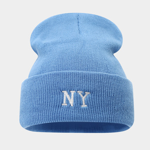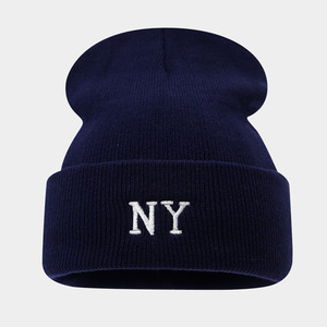 新款亚马逊NY刺绣滑雪帽子秋冬套头针织帽字母毛线帽男女豆豆帽子