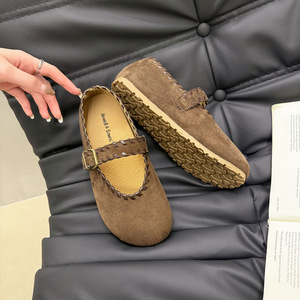 复古玛丽珍鞋2025年新款法式温柔晚风编织百搭圆头浅口一字扣单鞋