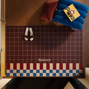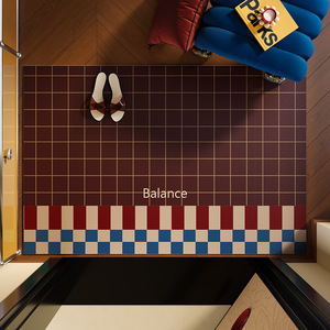莫方格中古包豪斯入户地垫玄关进门防滑门垫家用地毯皮革免洗可擦