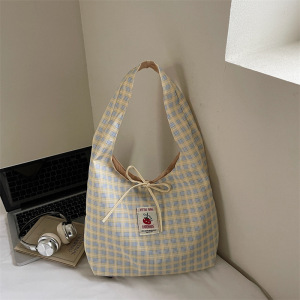韩系ins新款慵懒甜美格子秋季薄款单肩购物袋休闲通勤背心包女包