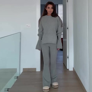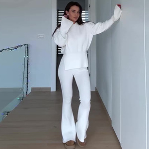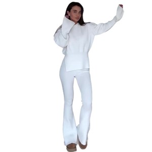 2025年秋季新款欧美亚马逊跨境外贸女装圆领开叉长袖休闲白色套装