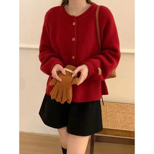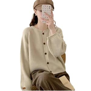 2025秋冬新款女装慵懒风宽松纯色针织开衫女毛衣外套上衣63粉色