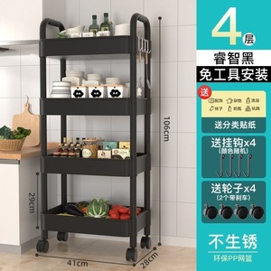 置物架多层收纳架小型窄杂物办公室落地架子柜子带轮子可移动桌边