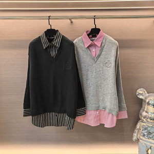 正确版本2025秋冬新款原标巴黎B家学院风假两件毛衣拼接衬衫男女