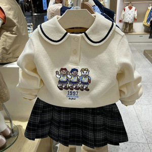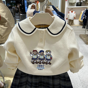 女童卫衣春秋款儿童秋装卡通小熊刺绣中大童韩系时尚海军领上衣