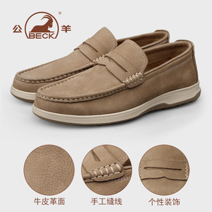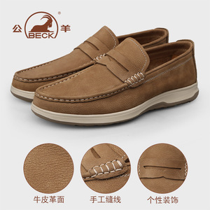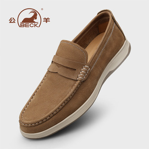 公羊皮鞋男款2025新款一脚蹬英伦真皮软底男士商务休闲皮鞋爸爸鞋