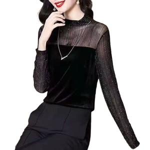 闪闪半高领修身打底衫女秋冬款蕾丝网纱内搭长袖T恤百搭显瘦上衣