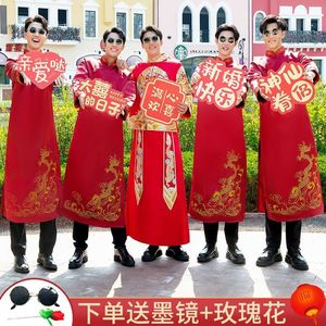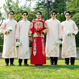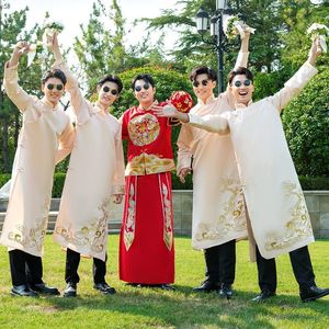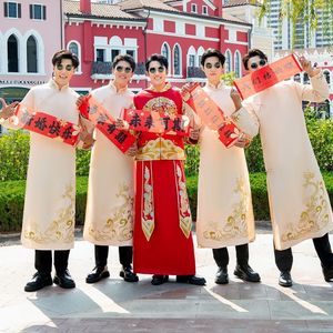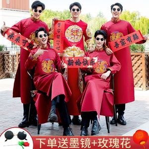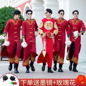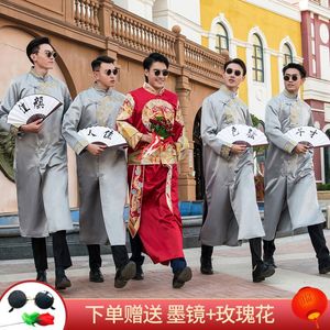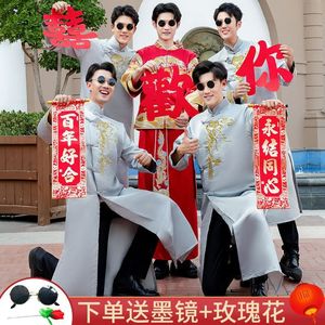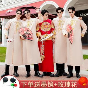 伴郎服兄弟团服装中式结婚礼服新郎唐装男长袍大褂中国风接亲马褂