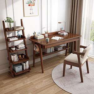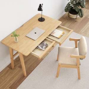 实木书桌北欧简约带抽屉中学生写字桌橡胶木台式电脑桌卧室办公桌