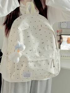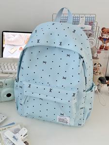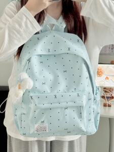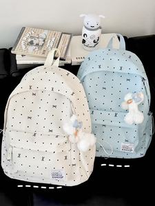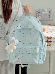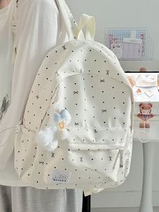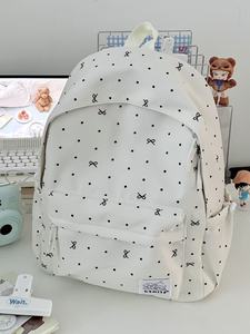 新款ins风简约波点设计感双肩包洋气学生背包蝴蝶结印花小众书包