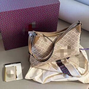 新Tortyburch老花帆布刺绣月牙包hobo新月包手提单肩托特斜挎包