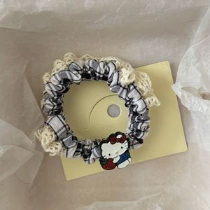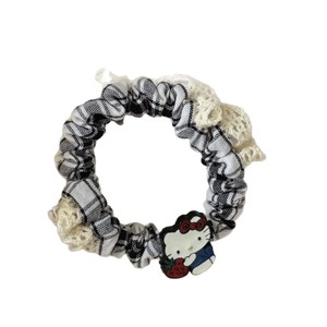 可爱红色草莓猫咪格子花边小肠圈发绳甜美风百搭少女马尾发绳发饰