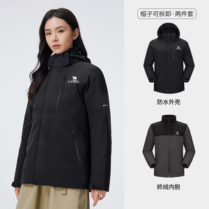 骆驼谷子黄色冲锋衣新男女情侣款三合一国标防暴雨防风登山服外套