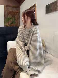 复古条纹圆领无帽长袖卫衣女2025秋季新款韩系宽松学生上衣ins潮