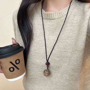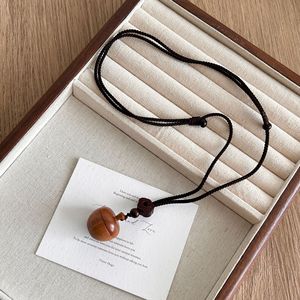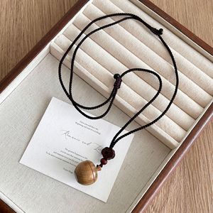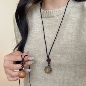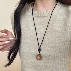 可打开的檀木苹果吊坠项链女新中式民族风复古小众长款毛衣链配饰