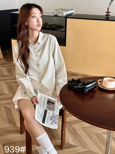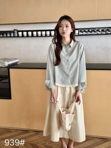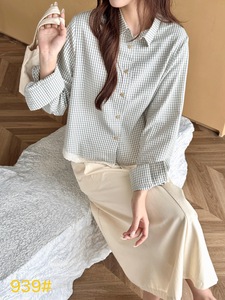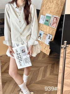 慵懒风甜妹日系格纹衬衣蕾丝拼接下摆长袖秋款格子衬衫女ZLG11