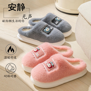 踩屎感卡通棉拖鞋秋冬季室内居家保暖加绒厚底轻便情侣月子毛托鞋